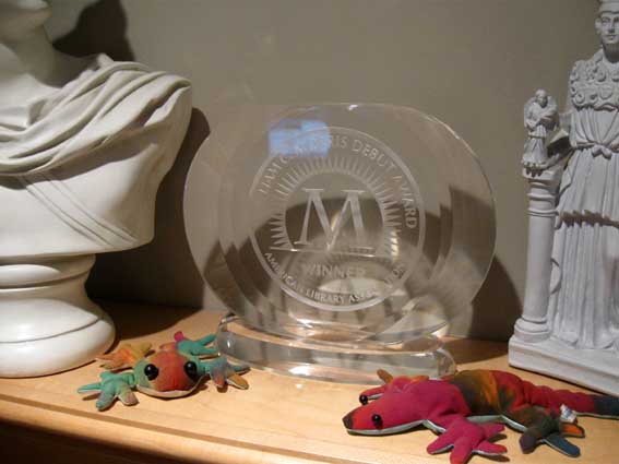 So as most of you have probably already heard, Seraphina received the Morris Award for best YA debut novel yesterday. I feel so fortunate that I got to be there in person and hear it announced. I got to meet this year’s Morris committee, shake hands, have pictures taken (including one where we all wore fake moustaches! Librarians are sillier than is commonly supposed), and just feel so very loved and encouraged all around. I managed to give my speech without falling off the stage, and they gave me a standing ovation.